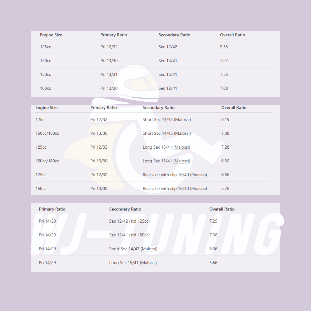 Deze langere vertanding zorgt voor een hogere topsnelheid en is ideaal voor getunede 180cc en 210cc setups.